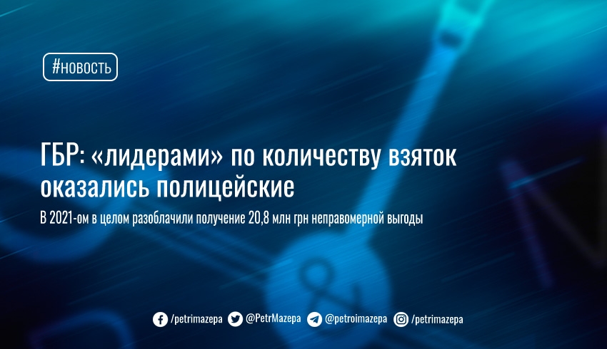 Государственное бюро расследований (ГБР) в этом году разоблачило получение взяток на общую сумму 20,8 млн гривен. Среди «лидеров» по количеству взяток оказались полицейские. С начала текущего года благодаря работе ГБР в суд направлены обвинительные акты в отношении 429 человек, из них 232 обвиняются по статье о получении неправомерной выгоды (ст. 368 УК Украины).