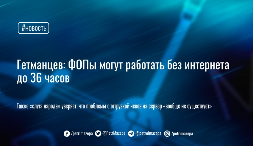 Гетманцев: ФОПы могут работать без интернета до 36 часов