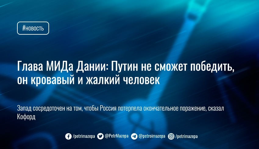 Россия и ее лидер Владимир Путин не смогут победить в войне с Украиной, заявил министр иностранных дел Дании Йеппе Кофод на брифинге в Киеве сегодня, 1 сентября.