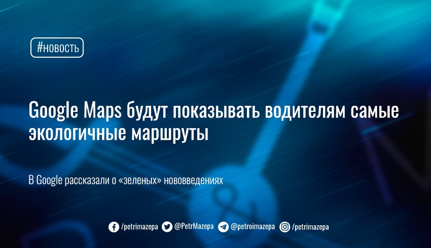 Сервис Google Maps анонсировал новую функцию - приложение будет показывать наиболее экологичный маршрут для автомобилей, с наименьшими выбросами углекислого газа с учетом таких факторов, как трафик и рельеф дороги.