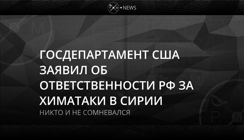 Госдепартамент США выступил с осуждением использования химического оружия в Сирии и ответственность за это использование возложил на РФ. «Россия, которая обещала миру в 2013 году гарантировать уничтожение запасов химического оружия Сирии, в конечном счёте ответственна за продолжение его использования там», – сказано в заявлении Госдепа.