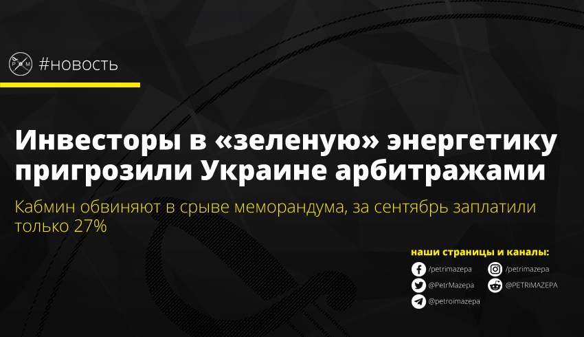 Инвесторы в «зеленую» энергетику пригрозили Украине арбитражами