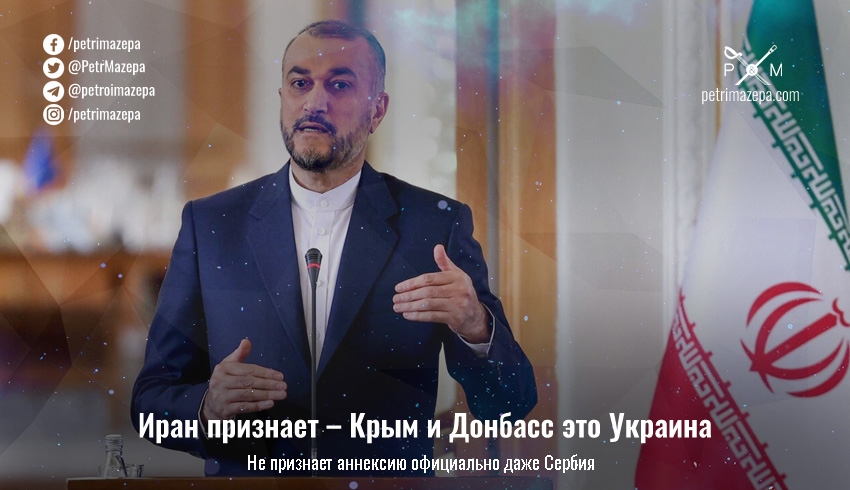 Об этом заявил министр иностранных дел Ирана Хоссейн Амир Абдуллахиан в интервью TRT World. «Мы признаем суверенитет и территориальную целостность стран в рамках международного права, поэтому, несмотря на хорошие отношения Тегерана и Москвы, мы не признали отделение Крыма от Украины. Мы не признали отделение Луганска и Донецка от Украины, потому что мы придерживаемся своего последовательного принципа во внешней политике. Когда мы говорим, что война — это не решение в Украине, мы верим в свою позицию как фундаментальный основополагающий политический принцип и мы полагаемся на это», — заявил он.
