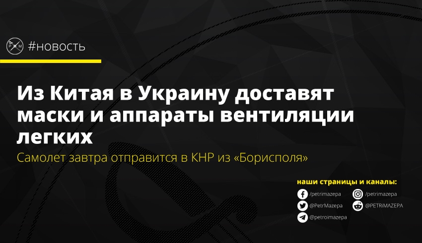 Завтра в Китай отправится самолет, который привезет в Украину тесты на коронавирус, маски и аппараты вентиляции легких.