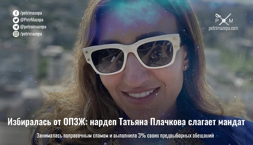 Народный депутат от ОПЗЖ Татьяна Плачкова слагает депутатский мандат. На выборах 2019 года была избрана народным депутатом от ОПЗЖ (№31 в избирательном списке).