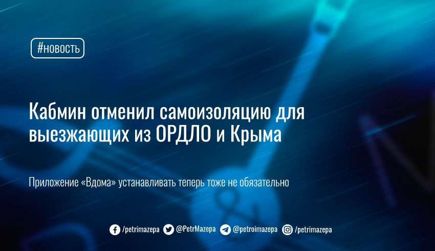 Кабинет министров отменил обязательное прохождение самоизоляции для людей, покидающих оккупированные территории, включая полуостров Крым.