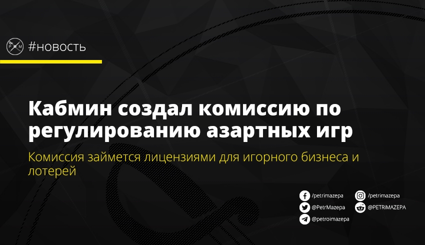 Кабинет министров сегодня, 23 сентября, принял постановление "О Комиссии по регулированию азартных игр и лотерей".