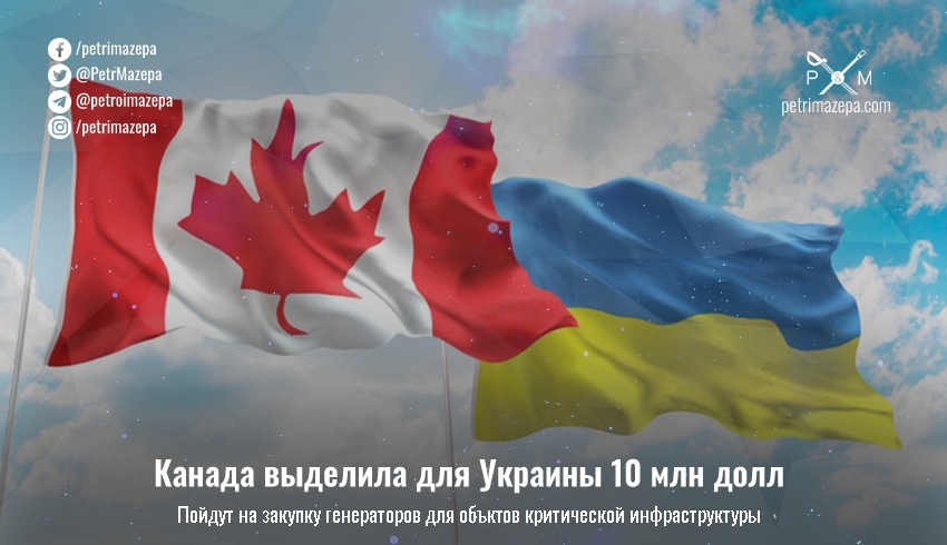 Канада выделила для Украины 10 млн долл. Деньги направят на закупку генераторов для критической инфраструктуры.