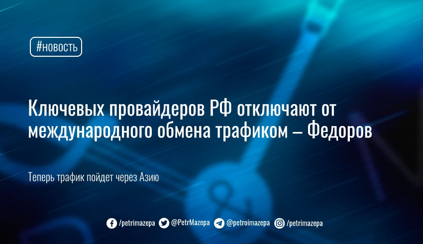Ключевых провайдеров РФ отключают от международного обмена трафиком – Федоров