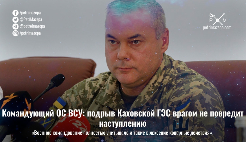 Командующий ОС ВСУ: подрыв Каховской ГЭС врагом не повредит наступлению