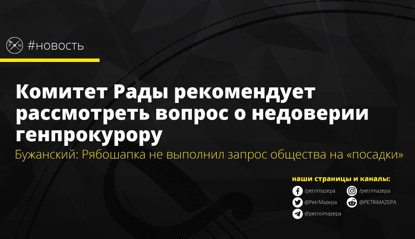 Комитет Верховной Рады рекомендует нардепам рассмотреть проект постановления о недоверии генпрокурору Руслану Рябошапке. Еще одно внеочередное заседание Рады, на котором поднимут этот вопрос, может состояться завтра.