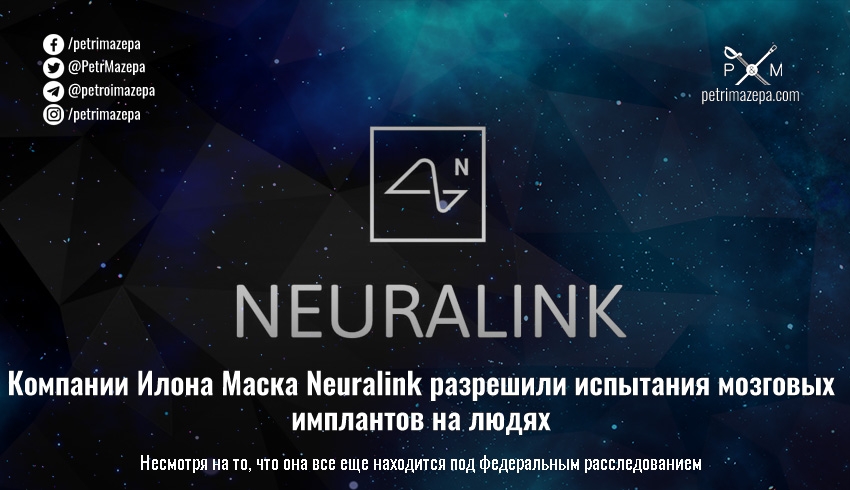 Компания Илона Маска Neuralink получила разрешение от Управления по продовольствию и медикаментам США на проведение испытания мозговых нейроимплантов на людях.