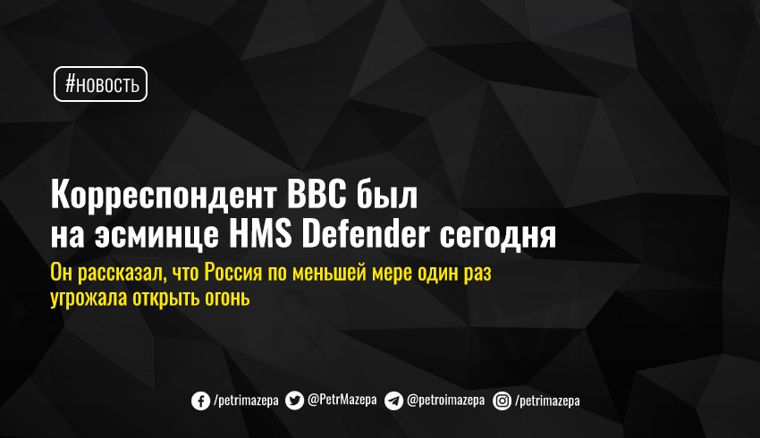 На британском эсминце HMS Defender оказался корреспондент BBC Джонатан Бил, который рассказал о сегодняшнем инциденте в Черном море.