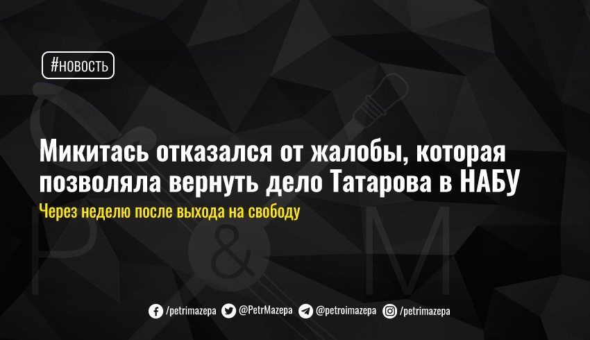 Микитась отказался от жалобы, которая позволяла вернуть дело Татарова в НАБУ