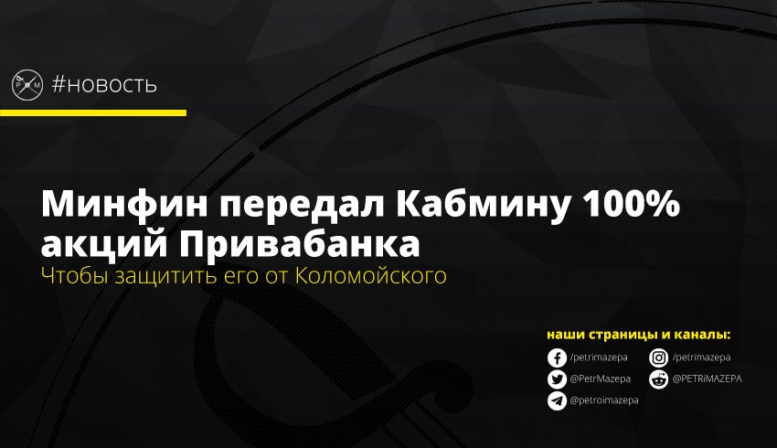 Министерство финансов передало 100% акций государственного Приватбанка в собственность Кабинета Министров. Это, по данным FinClub, было сделано чтобы защитить Приватбанк от Игоря Коломойского в случае победы олигарха в суде.