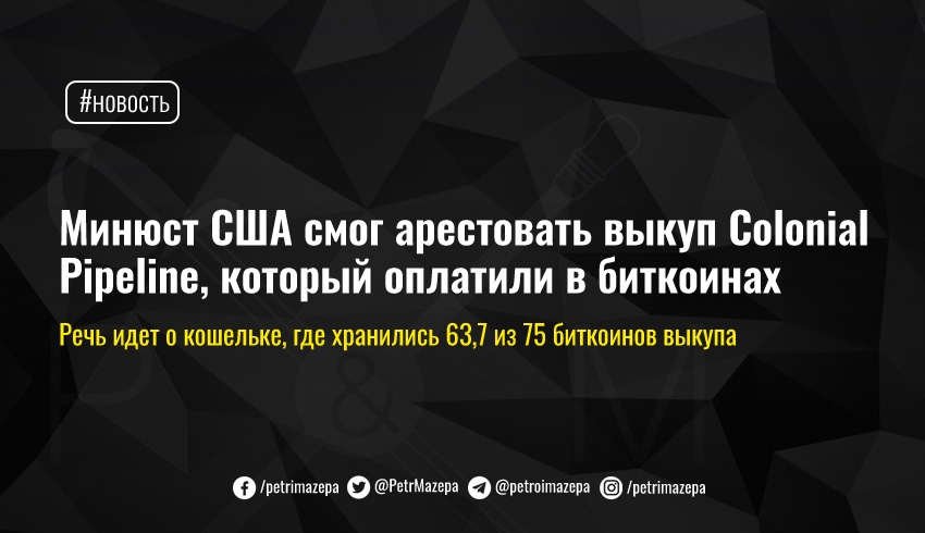 Минюст США смог арестовать выкуп Colonial Pipeline, который оплатили в биткоинах