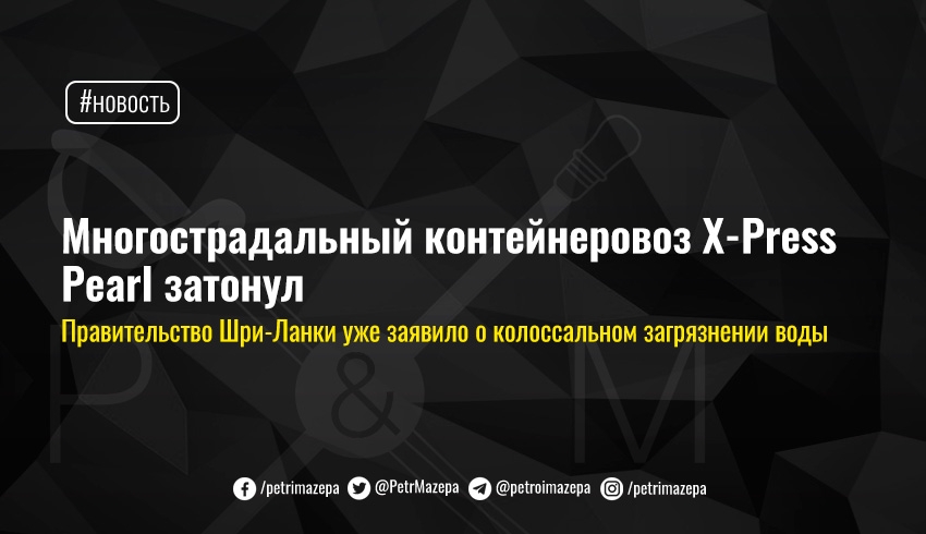 • Пожар на X-Press Pearl начался еще 20 мая. На борту X-Press Pearl было  почти полторы тысячи контейнеров, в том числе емкости с азотной кислотой, пластмассой и химикатами. Контейнеровоз принадлежит компании X-Press Feeders. Это один из крупнейших в мире морских грузоперевозчиков.