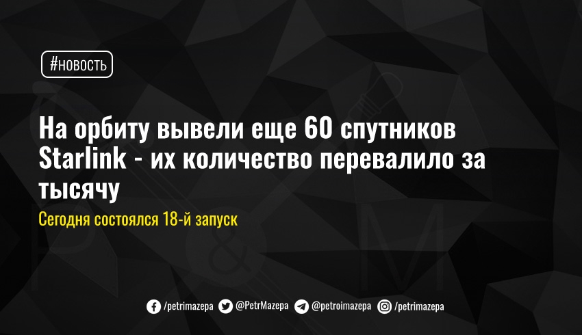На орбиту вывели еще 60 спутников Starlink - их количество перевалило за тысячу