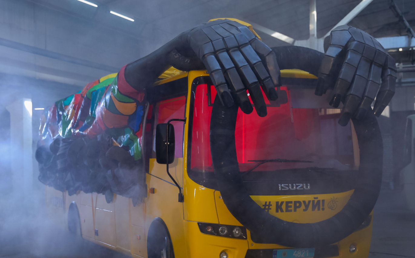 На украинские дороги выехал «автобус-призрак» с руками и рулём на кузове