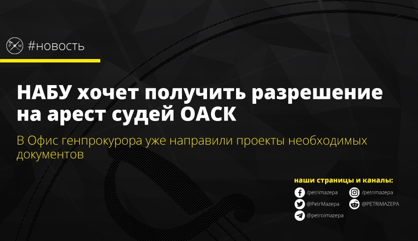 Детективы Национального антикоррупционного бюро Украины (НАБУ) направили генеральному прокурору проекты ходатайств в Высший совет правосудия о предоставлении разрешения на задержание и содержание под стражей подозреваемых судей Окружного административного суда Киева (ОАСК).
