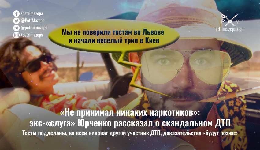 Нардеп Александр Юрченко, исключенный из фракции «Слуга народа» после скандала со взяткой решил прокомментировать недавнее ДТП с позитивным тестом на наркотики – заявляет, что наркотиков не употреблял, тест подделали, во всем виноват другой участник аварии, а доказательства мол у него есть, но они «будут позже». Авто, на котором он попал в ДТП, Юрченко мол одолжил у друзей, а совпадение номера машины и его года рождения – «случайность».