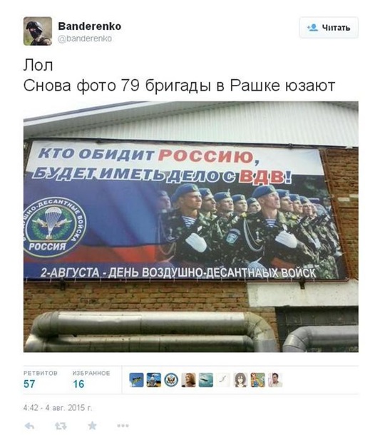 И если плакат как-то уже больно смахивает на фейк, то сотни сайтов, поздравляющих российских десантников с днем ВДВ, фоткой 79-ой аэромобильной бригады ВСУ – суровая реальность.