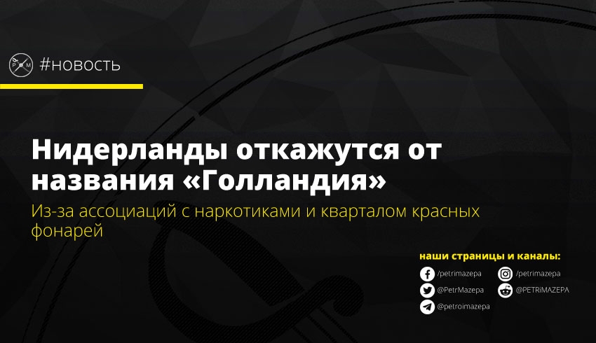 Власти Нидерландов разрабатывают масштабный ребрендинг, в рамках которого планируют отказаться от названия Голландия, которое ранее использовали как синоним официального. Причина этого ребрендинга – в ассоциациях с наркотиками и кварталом красных фонарей, и фокусировке на этих аспектах международного внимания.