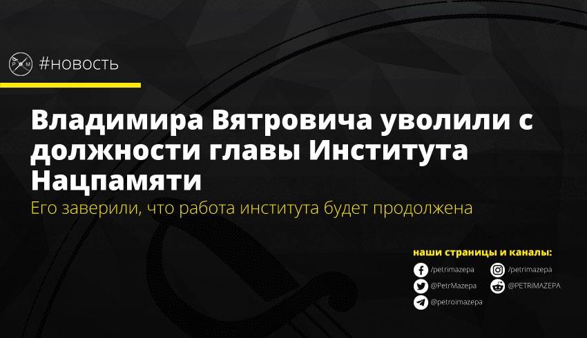 Владимира Вятровича уволили с должности главы Украинского института национальной памяти. Об этом в Facebook сообщил сам Вятрович, рассказав о своих достижениях и заверениях от премьер-министра Алексея Гончарука касательно сохранения форматов и направлений работы Института.