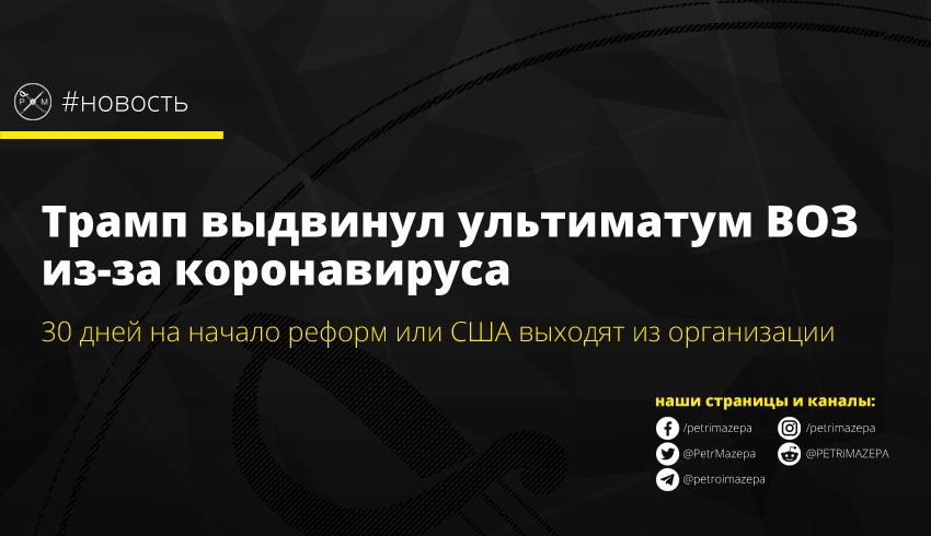 Направленное письмо Трамп опубликовал в своем официальном Twitter-аккаунте. Американский президент заявил, что дает ВОЗ 30-дневный срок, чтобы внедрить в жизнь «существенные улучшения». В противном случае организация рискует потерять финансирование США или вообще членство страны.