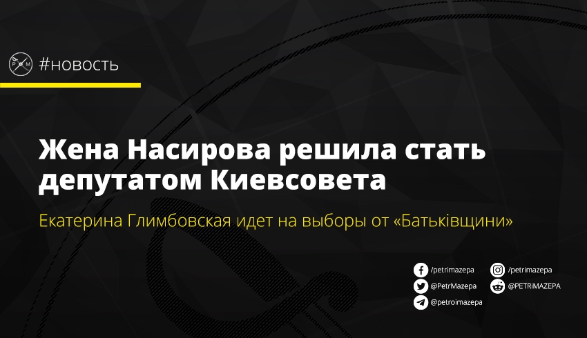 Жена бывшего главы Государственной фискальной службы Романа Насирова и директор компании Altis Екатерина Глимбовская будет участвовать в местных выборах. Она идет в Киев совет по списку партии «Батьківщина», сообщает общественное движение «Чесно».