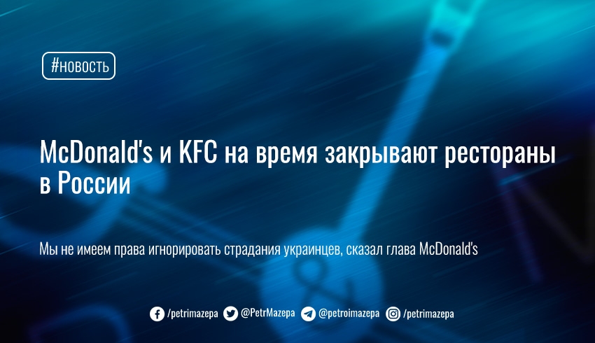 «После тщательных консультаций с нашим главой Риком Эрнандесом и остальным советом директоров McDonald's решил временно закрыть все наши рестораны в России и приостановить любую деятельность на этом рынке», - сообщил глава компании Крис Кемпчински.