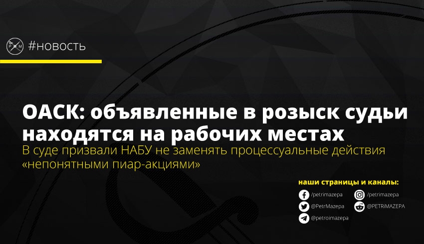 Пресс-служба ОАСК сообщила, что заявления НАБУ о систематической неявке судей на допросы «очевидно не отвечает действительности, потому что те сотрудники суда, которые были вызваны на допросы в установленном законом порядке, присутствовали на них». Остальные же судьи ОАСК, о которых говорили вчера в НАБУ, по данным суда в установленном законом порядке не получали сообщений о подозрении в совершении преступления, за которое они объявлены в розыск, и повесток про их вызов. НАБУ призывают «придерживаться действующего законодательства и не подменять предусмотренные им процессуальные действия непонятными пиар-акциями, рассчитанными исключительно на внимание СМИ».