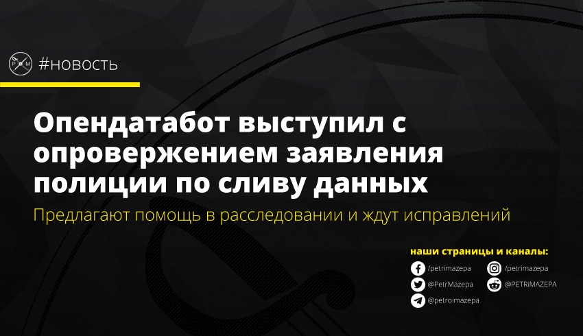 Платформа открытых данных Опендатабот опровергает возможную причастность к сливу данных и предлагает полиции не переводить стрелки и совместно расследовать случившееся.