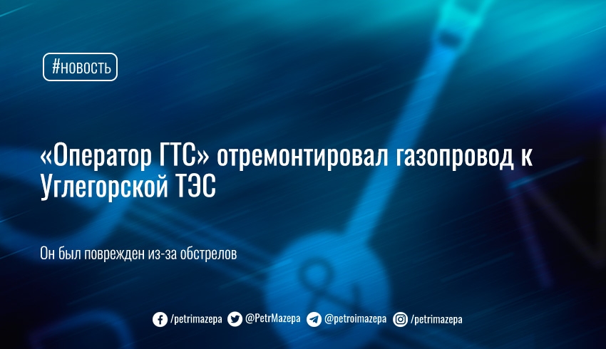«Оператор ГТС» отремонтировал газопровод к Углегорской ТЭС