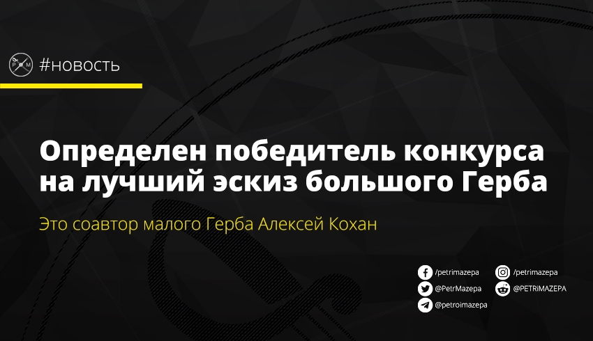 Определен победитель конкурса на лучший эскиз большого Герба Украины: им стал художник Алексей Кохан.