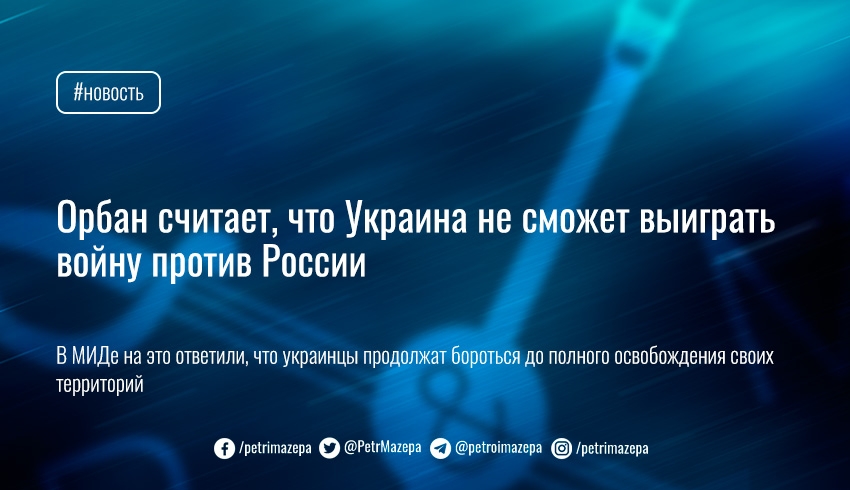 Премьер-министр Венгрии Виктор Орбан считает, что Украина не сможет выиграть войну против России.