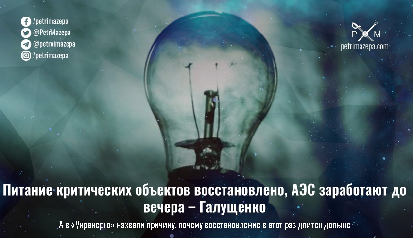 Питание критических объектов восстановлено, АЭС заработают до вечера – Галущенко