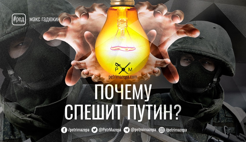 Я не говорю, что Путин только из-за электрического кабеля или торговли к нам бежит. Он спешит по общей причине: Украина становится слишком другой, чтобы надеяться её вернуть. Он спешит, потому что все это сам про**ал.