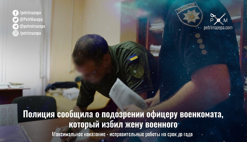 Полиция сообщила о подозрении офицеру военкомата, который избил жену военного