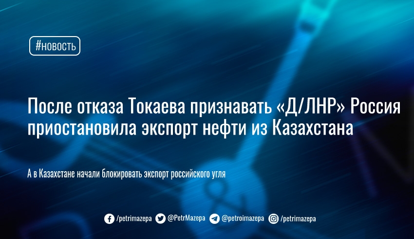 17 июня президент Казахстана Касим Жомарт Токаев, выступая на петербургском международном экономическом форуме, отрицательно оценил возможность признания «квазигосударственных образований Донецка и Луганска». Не прошло и пары суток, как в Новороссийске сообщили про мины времен ВМВ, расположенные рядом с нефтепроводом, по которому экспортируется нефть из Казахстана. Поэтому трубу собираются время от времени перекрывать, якобы для уничтожения находок. Казахстан тоже не остался в долгу и приостановил разрешения на экспорт российского угля через свою территорию.