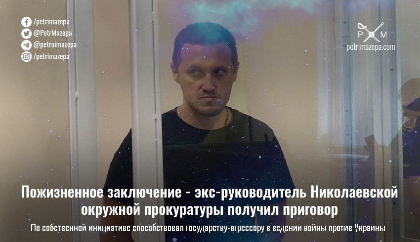 Бывший руководитель Николаевской окружной прокуратуры признан виновным в государственной измене (ч. 2 ст. 111 УК Украины). Он получил максимально возможное наказание — пожизненное лишение свободы с конфискацией принадлежащего имущества.
