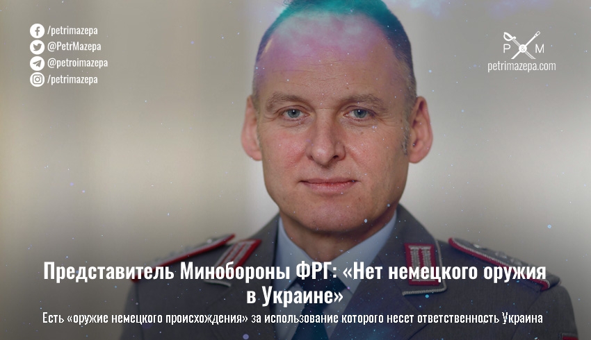 Представитель Минобороны ФРГ Арно Коллац на брифинге в Берлине заявил, что все оружие, которое Германия передала Украине, — это уже не немецкое оружие, а украинское. Но немецкого происхождения. И поэтому ответственность за то, как используется это оружие, несет Украина.