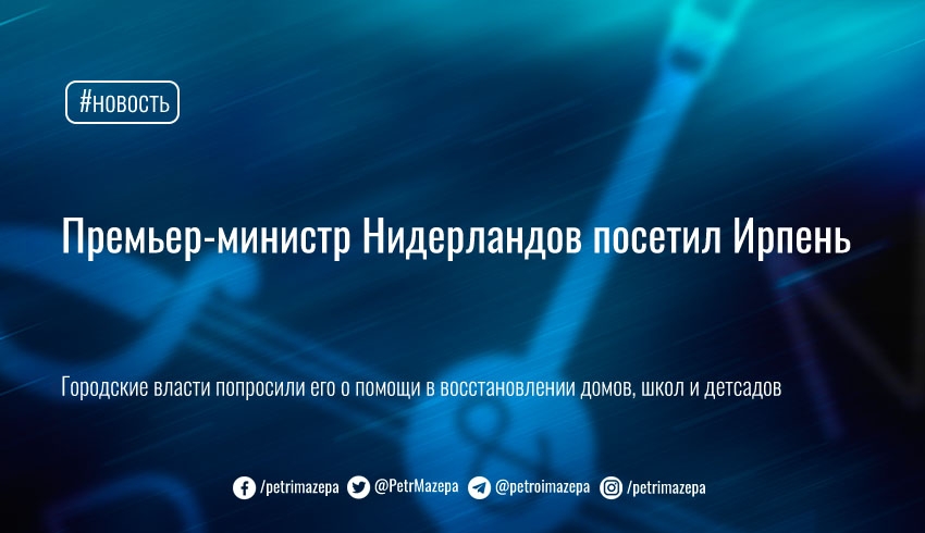 Он обнародовал совместную фотографию с главой правительства Нидерландов, и подчеркнул, что обратился к нему с просьбой оказать помощь в восстановлении жилья, школ и детских садов Ирпеня.