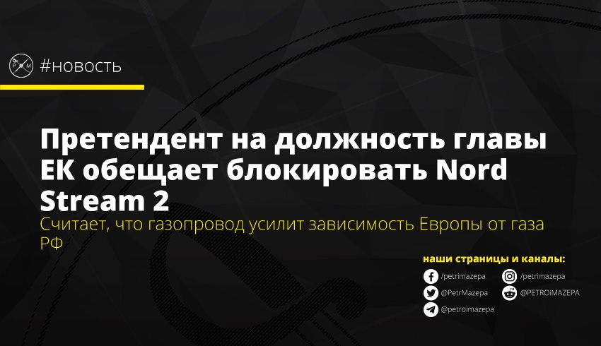 Претендент на должность главы ЕК обещает блокировать Nord Stream 2