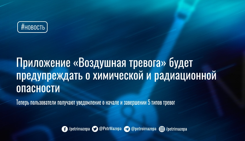 Приложение «Воздушная тревога» будет предупреждать о химической и радиационной опасности. В настоящее время приложение загрузили 11 миллионов раз. Его можно установить на iOS, Android и Huawei.
