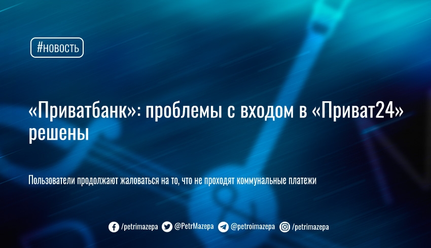 В приложении «Приват24» 12 мая произошел сбой. Клиенты «Приватбанка» не могли авторизоваться в системе. Около 16:30 в банке сообщили, что проблема решена. Но на данный момент есть жалобы на то, что не проходят коммунальные платежи.