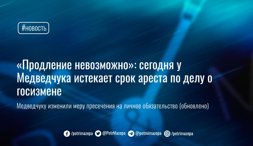 Об этом сообщает Офис генерального прокурора в Telegram, не называя Медведчука по имени, однако четко называя что речь идет о народном депутате, подозреваемом по статьям о госизмене и разграблении национальных ценностей. «Граничный срок в 6 месяцев нахождения подозреваемого под круглосуточным домашним арестом в этом уголовном деле закончился, и дальнейшее его продление является невозможным. Единственная мера пресечения, о которой на данный момент может ходатайствовать сторона обвинения – это личное обязательство с возложением на подозреваемого обязанностей», - информирует Офис генпрокурора.