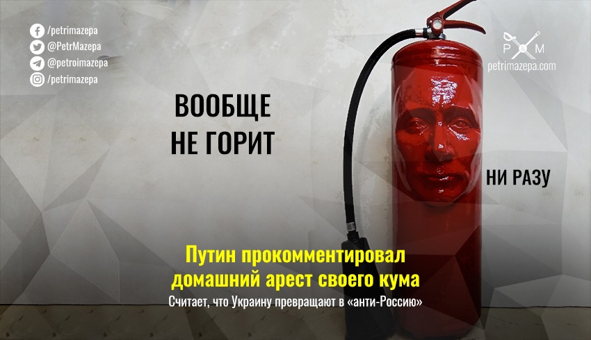 Так же президент страны-агрессора назвал случившееся «зачисткой политического поля» и заявил, что Медведчук выступал за «мирное разрешение кризиса на юго-востоке Украины, в Донбассе, и за добрососедские отношения с Россией».