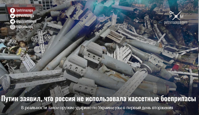 «У России достаточный запас кассетных боеприпасов... Мы до сих пор не применяли и у нас не было необходимости, несмотря на известную нехватку в определенный период времени и у нас тоже боеприпасов, мы этого не делали», - поделился путин новой версией «официальной линии партии» с российскими пропагандистами.