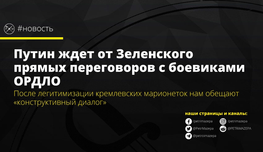 Президент страны-агрессора В.В. Путин заявил, что Россия готова идти на переговоры с Украиной только если президент «начнет выполнять свои предвыборные обещания». Обещаниями Путин называет старт прямых переговоров с боевиками ОРДЛО. После легитимизации кремлевских марионеток и снятия ответственности с Путина страна-агрессор готова продолжить требовать возвращения к полной зависимости, обещая взамен «сотрудничество на основе доверия и взаимопонимания».